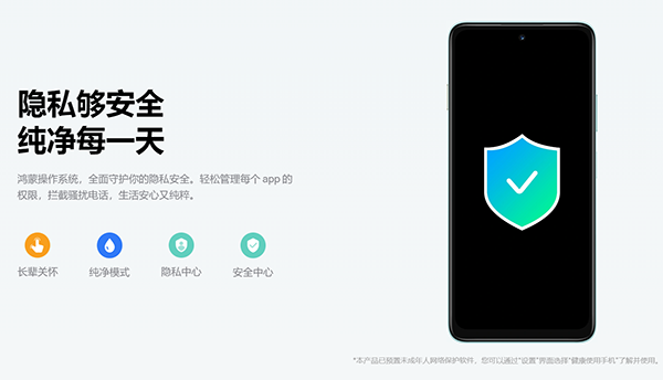 華為暢享80搭載鴻蒙操作系統(tǒng),配備了隱私中心、安全中心、純凈模式,為用戶提供設(shè)備整體安全畫像、騷擾攔截和風(fēng)險(xiǎn)應(yīng)用管控。
