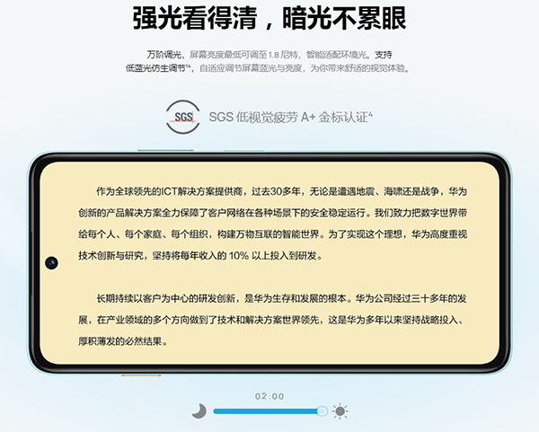 不僅如此,華為暢享80支持1000nit峰值亮度,較上一代暢享數(shù)字系列產(chǎn)品提升122%。同時(shí)通過顯示算法加持,在陽光下也能看得清屏幕顯示內(nèi)容。