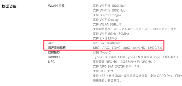 藍(lán)牙5.4,低功耗藍(lán)牙,藍(lán)牙音頻規(guī)格上支持SBC,AAC,LDAC,aptX,aptX HD,LHDC 5.0。