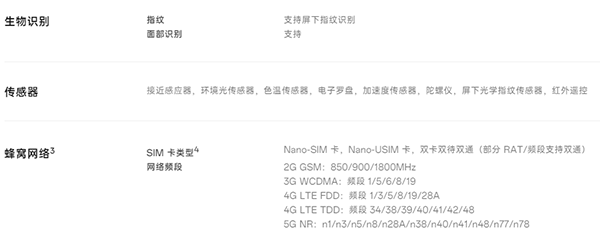 5G NR頻段:n1/n3/n5/n8/n28A/n38/n40/n41/n48/n77/n78;