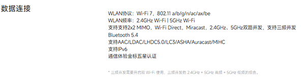 藍(lán)牙5.4,并且支持AAC/LDAC/LHDC5.0/LC3/ASHA/Auracast/MIHC。