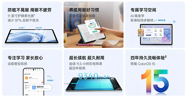 該平板的電池容量高達9340mAh,在線網課續(xù)航可達11.5小時,充分滿足了現(xiàn)代人對長時間使用的需求。