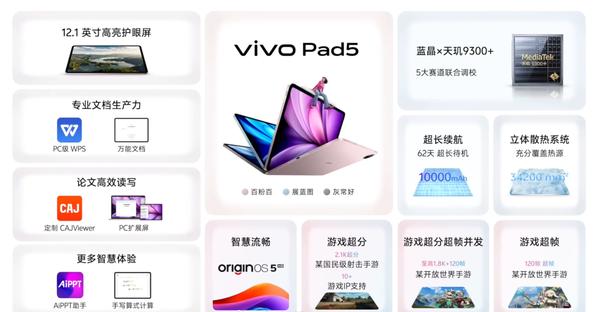 這次的vivo Pad5以2.8K 144Hz高刷屏、10000mAh電池和Dimensity 9300+處理器,成為平板市場(chǎng)的全能選手,OriginOS 5和豐富配件進(jìn)一步提升生產(chǎn)力,適合學(xué)生、專業(yè)人士和影音愛(ài)好者。