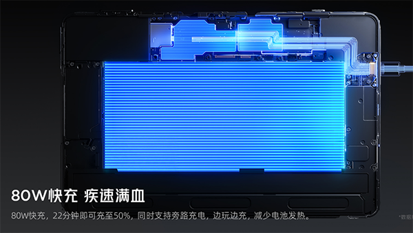 80W,紅魔電競(jìng)平板3 Pro配備了一塊8200mAh的大電池,并且支持80W快充。