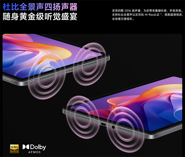 四個,紅米Pad2配置了四顆2016揚聲器單元,支持Hi-Res認(rèn)證。