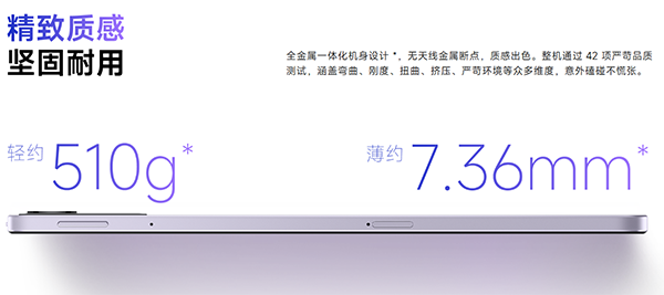 在配置方面,紅米平板Pad2用的是聯(lián)發(fā)科G100芯片,跑分四十三萬(wàn)左右,玩王者榮耀應(yīng)該能行,機(jī)身7.36毫米厚,大概510克重。
