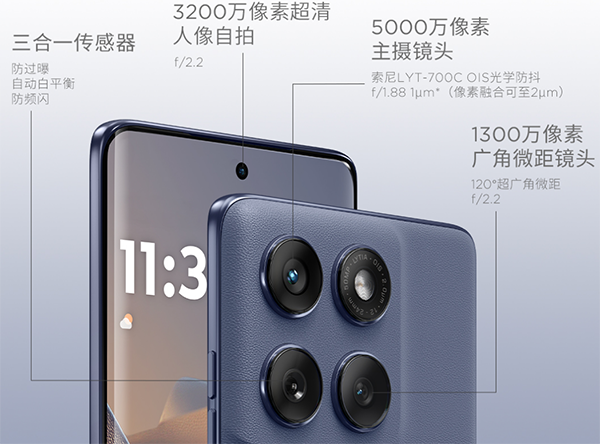這次的聯(lián)想moto edge 60s后置攝像頭系統(tǒng)由一顆5000萬(wàn)像素OIS主攝(索尼LYT700C,1/1.56英寸,f/1.8,1.0μm大像素)、一顆1300萬(wàn)像素超廣角微距鏡頭(122°FOV,支持微距,f/2.0光圈)組成,前置則是一顆3200萬(wàn)像素自拍鏡頭。