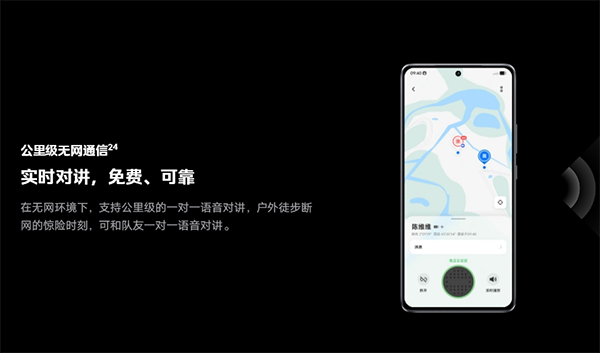 當蜂窩信號消失在地鐵深處或山野賽道,它內(nèi)置的“公里級無網(wǎng)通信”立刻化身離線對講機——無需基站,即可語音對話或發(fā)起SOS求助,遠距離、跨設(shè)備、全免費。