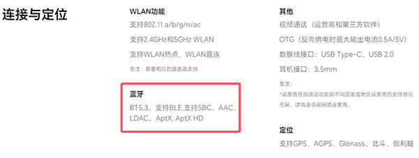 藍(lán)牙5.3,并且支持BLE,支持SBC、AAC、LDAC,AptX,AptX HD這些音頻格式。