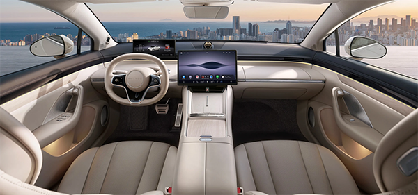 車(chē)內(nèi)配備了三幅式多功能方向盤(pán)、12.3英寸全液晶儀表、15.6英寸懸浮式中控屏、50W手機(jī)無(wú)線(xiàn)充電模塊等。中控臺(tái)的設(shè)計(jì)概念也源自游艇前艙甲板,能夠讓視野更通透,同時(shí)增強(qiáng)中控臺(tái)設(shè)計(jì)上的層次感。