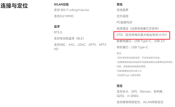 另外,該機(jī)還支持OTG反向充電,也就是有線反向充電了,這個反向供電時最大輸出電流1A/5V。