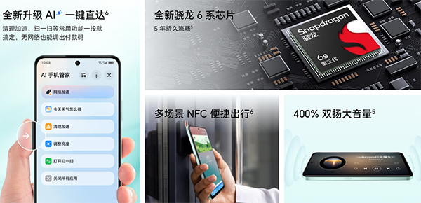 處理器是去年的驍龍6sGen3,6nm工藝,榮耀說靠系統(tǒng)優(yōu)化能保證五年流暢,但實際用起來能不能這么持久還不清楚。后置攝像頭5000萬像素,支持AI消除和AI修復照片,但主要還是掃碼級別的功能。