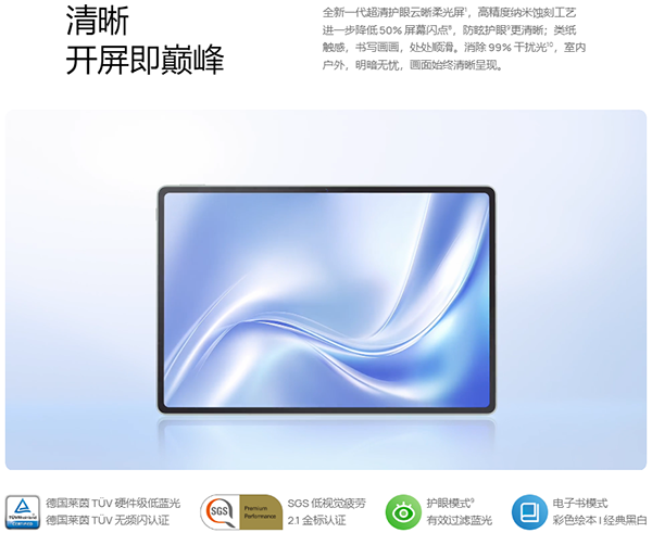 華為MatePad Air 12英寸2025配置的是12英寸超清護(hù)眼云晰柔光屏,全屏亮度最高可達(dá)1000nits,無論是戶外陽光下還是室內(nèi)復(fù)雜燈光下,都能清晰顯示。