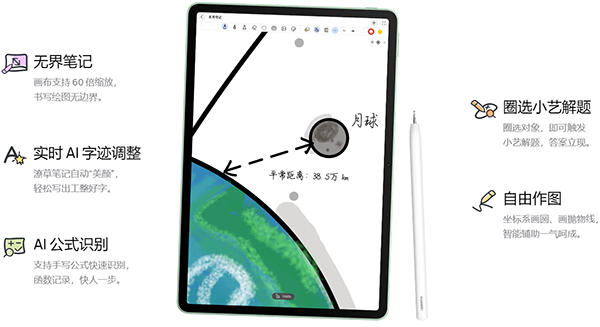它還完美適配HUAWEI M-Pencil Pro,這支筆不僅支持多種專業(yè)筆尖,升級振感反饋,更創(chuàng)新性地在華為筆記、天生會畫App中引入“輕捏調(diào)出應用專屬波輪菜單”等多維交互方式,配合小藝快捷指令,顯著提升創(chuàng)作效率和操作精準度。