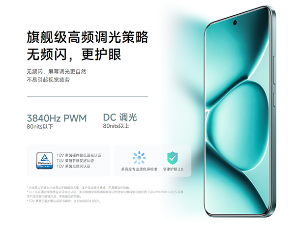 有,紅米Note15 Pro+配置的是小米青山護(hù)眼屏幕,并且采用的是高亮度下的DC調(diào)光+低亮度下的3840Hz高頻PWM調(diào)光,滿足不同場景的護(hù)眼需求。