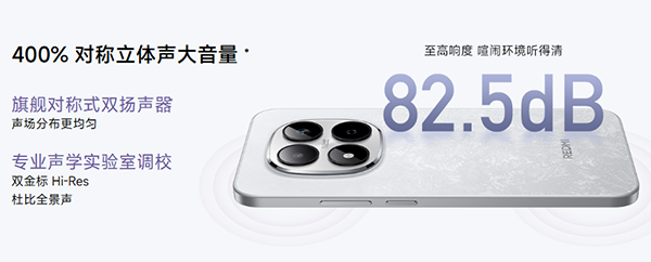 雙,紅米Note15 Pro配備1115規(guī)格的對(duì)稱(chēng)雙揚(yáng)聲器,響度高達(dá)82.5dB,帶來(lái)400%大音量模式。