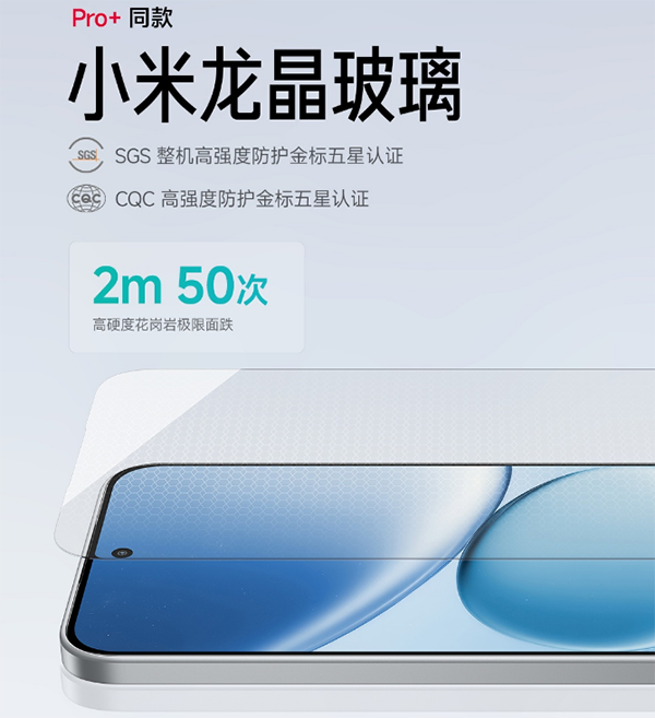 屏幕:尺寸是6.83英寸,OLED居中打孔直屏,2772×1280分辨率(屬于是1.5K級(jí)別),120Hz屏幕刷新率+480Hz觸控采樣率(2560Hz瞬時(shí)觸控采樣率),全局峰值亮度1800nit,局部峰值亮度3200nits,3840Hz高頻PWM調(diào)光+DC調(diào)光,12bit 色深(687億色),DCI-P3色域,小米龍晶玻璃,屏下光學(xué)短焦指紋識(shí)別,濕手/油手觸控2.0;