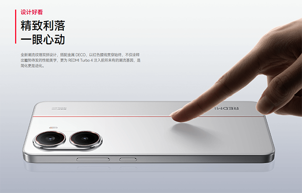 在外觀上,這個(gè)紅米Turbo4潮流紋理雙拼設(shè)計(jì),還貫穿了一條纖細(xì)紅腰線,相比上代簡(jiǎn)約而不簡(jiǎn)單。機(jī)身背部整體為AG柔霧玻璃,觸感細(xì)膩。給人第一印象并不是一臺(tái)性能手機(jī),而更像是走顏值風(fēng)的產(chǎn)品。
