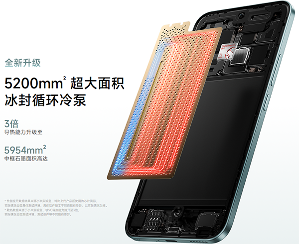 散熱方面搭載冰封循環(huán)冷泵散熱,覆蓋5200平方毫米不銹鋼循環(huán)冷泵+6516平方毫米石墨。