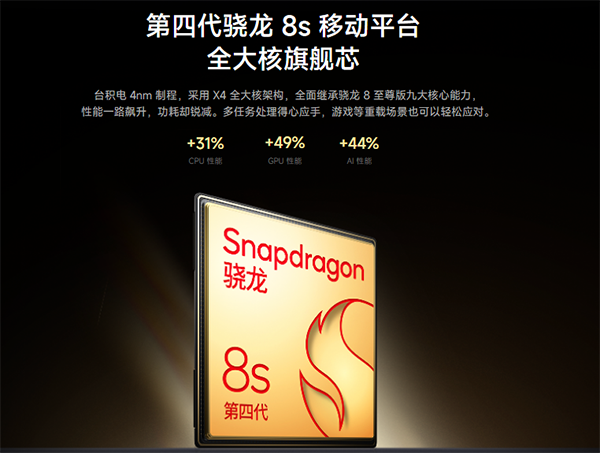 在性能方面,搭載的是第四代驍龍8S移動平臺,擁有12GB LPDDR5X高速內(nèi)存和256GB UFS4.0高速存儲。