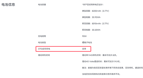 也就是說(shuō),vivo Y500首發(fā)8200mAh藍(lán)海電池,支持90W的有線充電,并且還支持OTG反向充電。