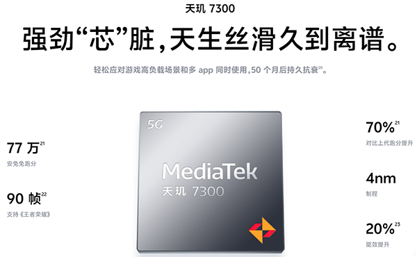4納米,vivo Y500搭載了聯(lián)發(fā)科天璣7300處理器,采用臺積電4nm制程。
