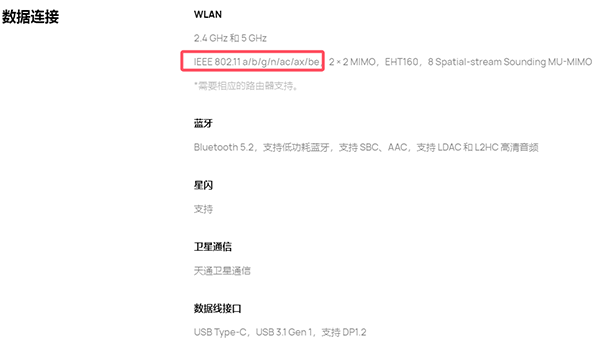 網絡上,這個華為Mate XTs支持WIFI7網絡(也就是802.11 a/b/g/n/ac/ax/be)。