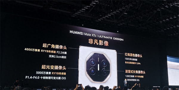 值得一提的是,華為Mate XTs非凡大師新增了紅楓原色攝像頭,精準識別全局色彩信息,色彩還原度提升120%。