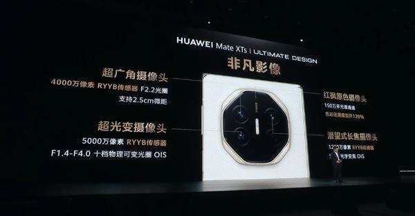 華為Mate XTs非凡大師在影像體驗方面再度升級,將超光變主攝、超廣角鏡頭、長焦攝像頭升級為RYYB傳感器,同時將超廣角鏡頭分辨率提升至4000萬像素,進(jìn)光量提升40%。