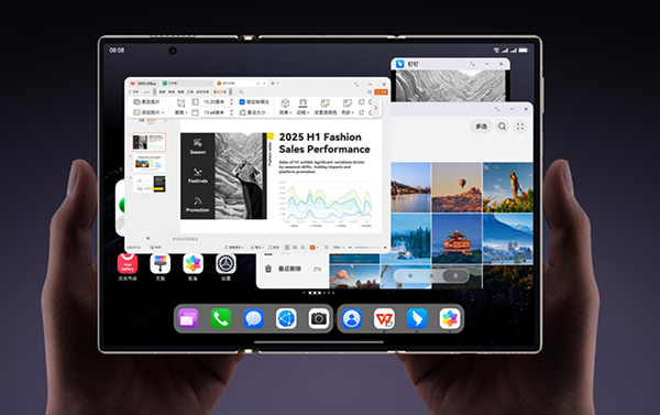 它還將PC級(jí)交互體驗(yàn)帶入手機(jī),自由多窗模式下,應(yīng)用窗口可疊放、縮放、快速切換,全景多窗支持三窗并行,窗口大小可調(diào)整,內(nèi)容可跨應(yīng)用拖拽。