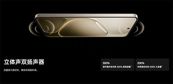音效方面,該機(jī)配置了新一代立體雙揚(yáng)聲器,經(jīng)極限調(diào)試,外放音量最高提至300%,聽筒通話音量最高提至200%,高音調(diào)校實(shí)現(xiàn)大音量與好音質(zhì)兼得。
