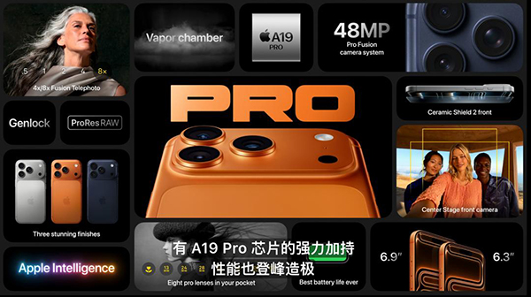 iPhone 17 Pro系列搭載A19 Pro芯片(6核CPU+6核GPU,而iPhone Air只有5核GPU),搭配全新升級的散熱設(shè)計,持續(xù)性能相比iPhone 16 Pro宣稱提升40%。