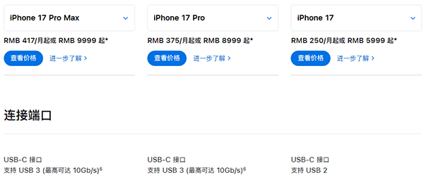 蘋果iPhone 17 Pro接口規(guī)格是USB幾,2.0還是3.1