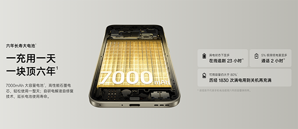 也就是說,OPPO A6 Pro配置的是7000mAh大容量電池(但不是冰川電池),高性能石墨電芯,輕松使用一整天。