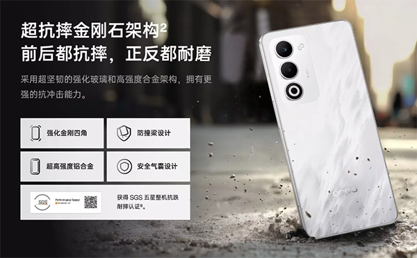 其他:金剛石架構(gòu)(SGS五星整機抗跌耐摔認(rèn)證),Wi-Fi 5(802.11ac),USB 2.0,側(cè)邊指紋識別,IP65級別防水,單頻GPS和北斗,預(yù)裝Android的ColorOS 15.0操作系統(tǒng)。