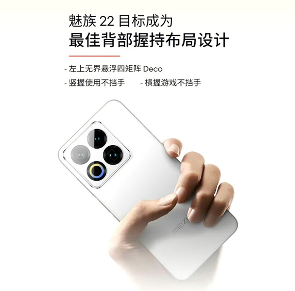 從外觀上來看,這一代的魅族22采用名為“奇點設(shè)計”的外觀設(shè)計語言,其相機(jī)模組配備與機(jī)身同色的Deco設(shè)計,同時采用分離式Deco結(jié)構(gòu),通過開孔處理優(yōu)化視覺效果。