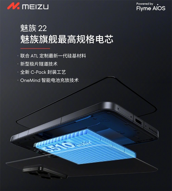 魅族22也搭載了5510mAh大電池,其中搭載超耐久硅碳負(fù)極高能量密度電池,聯(lián)合ATL的定制最新一代硅基材料,能量密度提升18.5%,結(jié)合OneMind智能充放技術(shù),可以讓續(xù)航更持久。