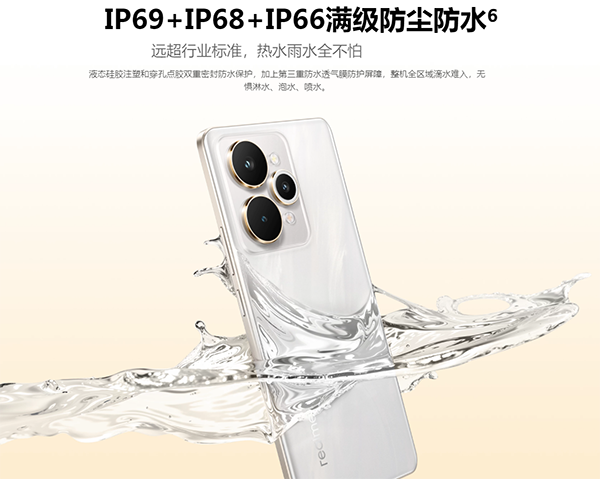 IP69+IP68+IP66級(jí)別防水,真我15 Pro支持IP69+IP68+IP66的滿級(jí)防水,面對(duì)雨天、泡水等意外情況可以避免手機(jī)進(jìn)水損壞。