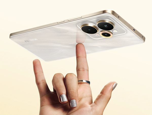 而且其中一顆還有類似環(huán)星燈設計,可以帶來更好的拍照效果,同時也增加了產品設計感,而且,真我15 Pro白色的背板搭配了金色的中框設計,視覺上很養(yǎng)眼。