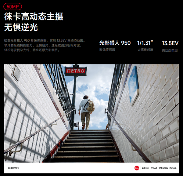 從這個(gè)影像配置上來(lái)看,這次的小米17延續(xù)徠卡光學(xué)底蘊(yùn),采用的是主攝+長(zhǎng)焦+廣角的經(jīng)典三攝組合,以“全焦段5000萬(wàn)像素”和“光影獵人950”主攝為核心,實(shí)現(xiàn)了小屏機(jī)影像的全面越級(jí)。
