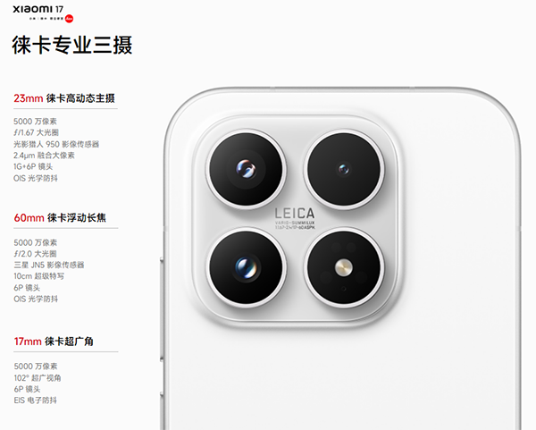 手機(jī)的拍照好不好,它與多種參數(shù)是直接關(guān)系的,除了基本的像素高低以及傳感器之外,還有就是焦距了,不同的鏡頭配置的焦距都是不一樣的,那這次的小米17相機(jī)鏡頭焦距是多少呢,下面帶大家來(lái)看看相關(guān)的介紹吧。