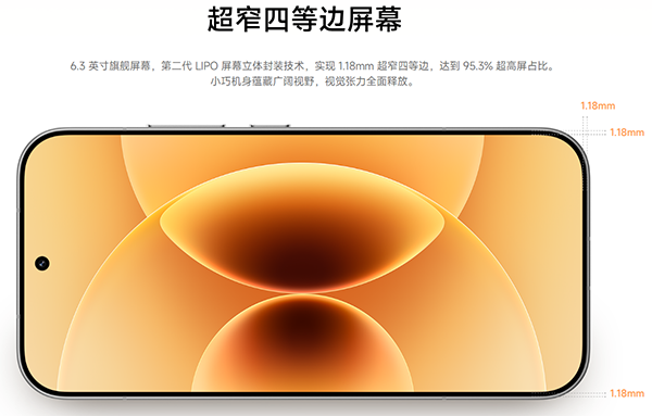 該機(jī)的正面視覺沖擊力相當(dāng)強(qiáng)。官方強(qiáng)調(diào)的 1.18mm“最窄四等邊” 設(shè)計(jì)名不虛傳,相比前代又有進(jìn)步。屏幕四周的黑邊幾乎微不可察,畫面像是浮于屏上,邊界感極大削弱。