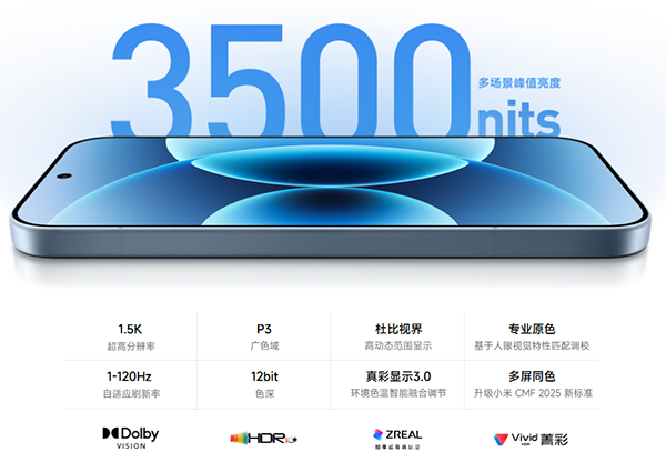 小米17屏幕參數(shù):6.3英寸,分辨率是2656×1220(屬于1.5K級(jí)別),OLED直屏,屏幕供應(yīng)商是華星光電,M10發(fā)光材料(新型紅色發(fā)光主材),460PPI,手動(dòng)最高亮度800nit,全局激發(fā)亮度1000nit,局部峰值亮度3500nit(25%窗口,無內(nèi)容格式限制),支持1?120Hz LTPO,觸控采樣率最高300Hz,默認(rèn)全亮度類DC調(diào)光(可切換2160Hz高頻PWM調(diào)光),圓偏振光護(hù)眼技術(shù),小米龍晶玻璃,四邊1.18mm等窄,濕手觸控,3D超聲波指紋,12bit色深,支持DCI-P3色域;