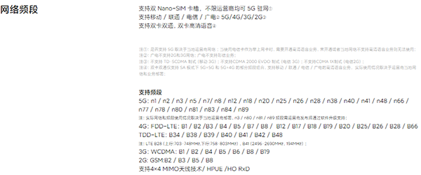5G頻段:n1/n2/n3/n5/n7/n8/n12/n18/n20/n25/n26/n28/n38/n40/n41/n48/n66/n77/n78/n80/n81/n83/n84/n89。