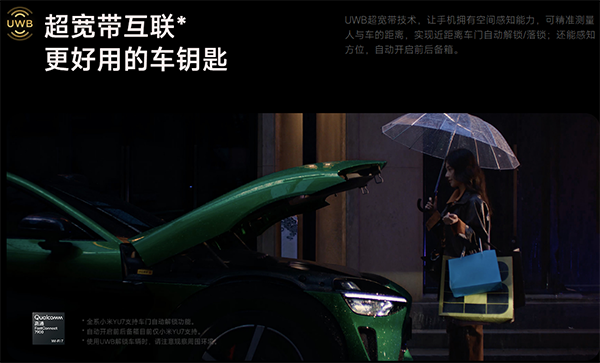 支持,小米17 Pro Max配置的有UWB超寬帶技術(shù),讓手機擁有空間感知能力,可精準(zhǔn)測量人與車的距離,實現(xiàn)近距離車門自動解鎖/落鎖;還能感知方位,自動開啟前后備箱。