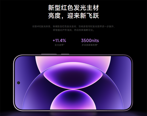 新一代的華星光電M10發(fā)光材料用上了新型的紅色發(fā)光主材,擁有極高的發(fā)光效率,在全亮度下都比iPhone更低。在極高的屏幕素質(zhì)下提供依然出色的續(xù)航時(shí)間。