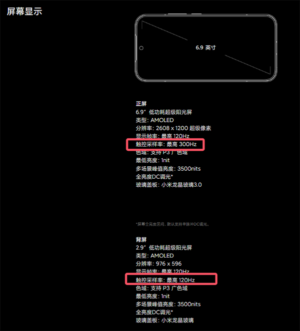 6.9英寸正面屏幕是最高300Hz觸控采樣率,妙享背屏是最高120Hz觸控采樣率。