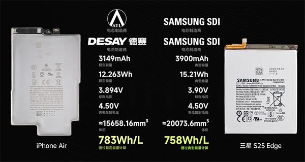 另外,這款手機(jī)屏幕尺寸為6.5英寸,通過(guò)創(chuàng)新的內(nèi)部設(shè)計(jì),機(jī)身厚度僅為5.6mm,顛覆了消費(fèi)者對(duì)手機(jī)厚度的認(rèn)知,而輕薄的代價(jià)是,iPhone Air機(jī)型的電池容量?jī)H為3149mAh。