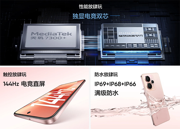 核心配置方面,真我15搭載了聯(lián)發(fā)科天璣7300+處理器和真我自研4nm電競獨顯,支持超百款游戲?qū)崿F(xiàn)超幀超分。
