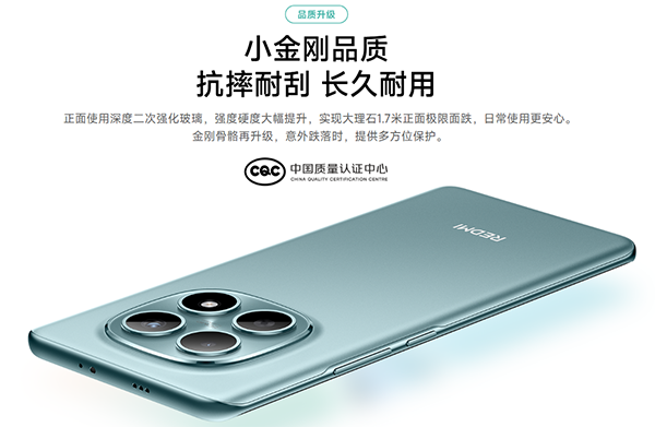抗摔,紅米Note15采用了金剛骨骼架構(gòu),抗摔耐刮 長久耐用。